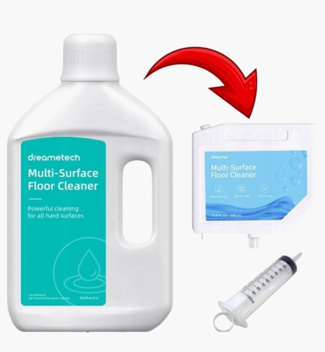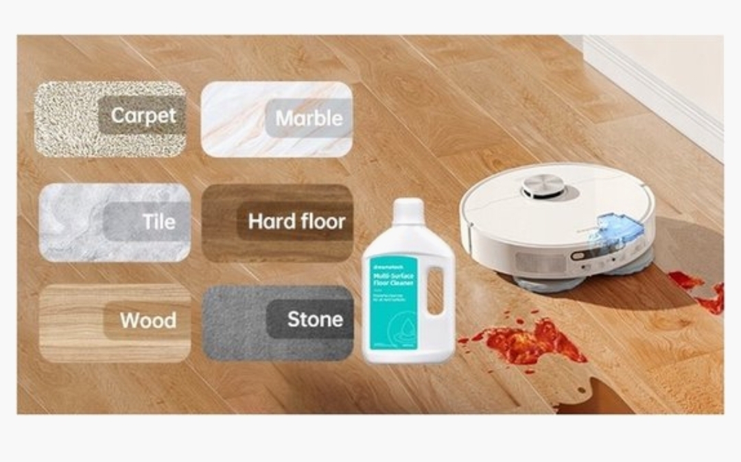 • Vloerreiniger: Dosering en gebruik volgens de instructies van Dreame robotstations; mengt automatisch met water voor de perfecte reinigingsoplossing.