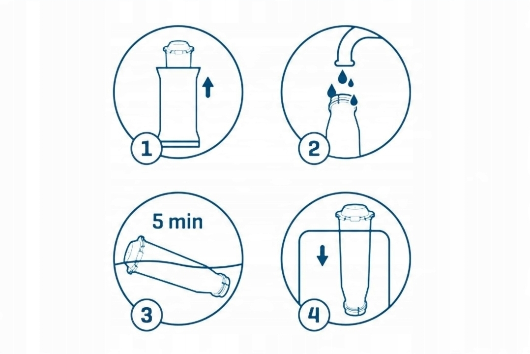 Laat het filter vóór installatie 5 minuten in water weken om de filtermaterialen te activeren.